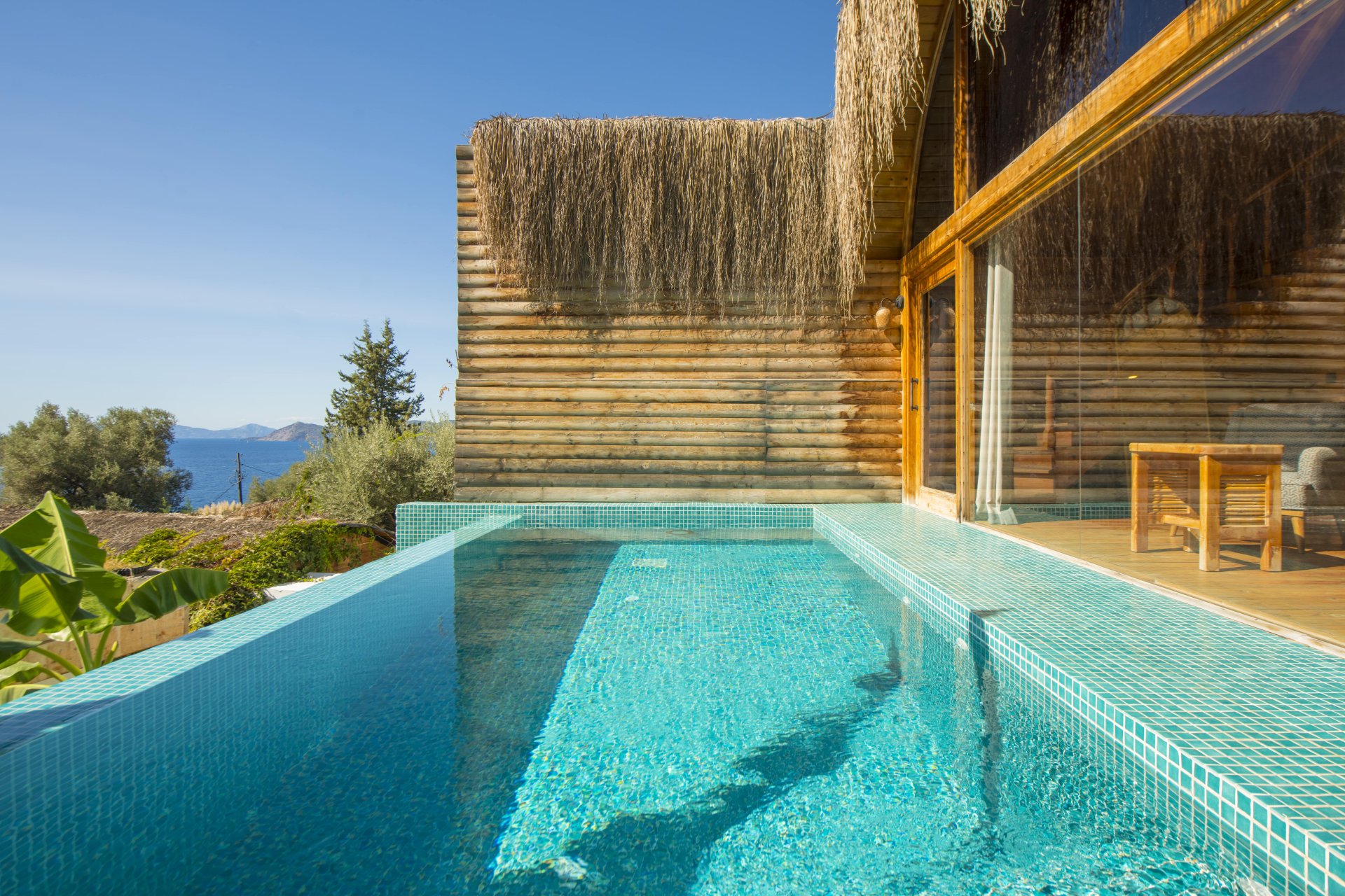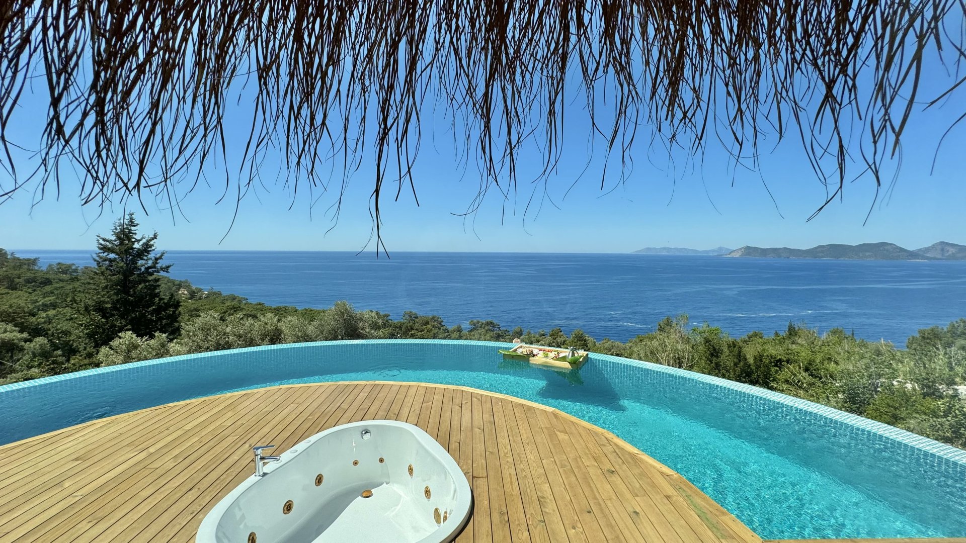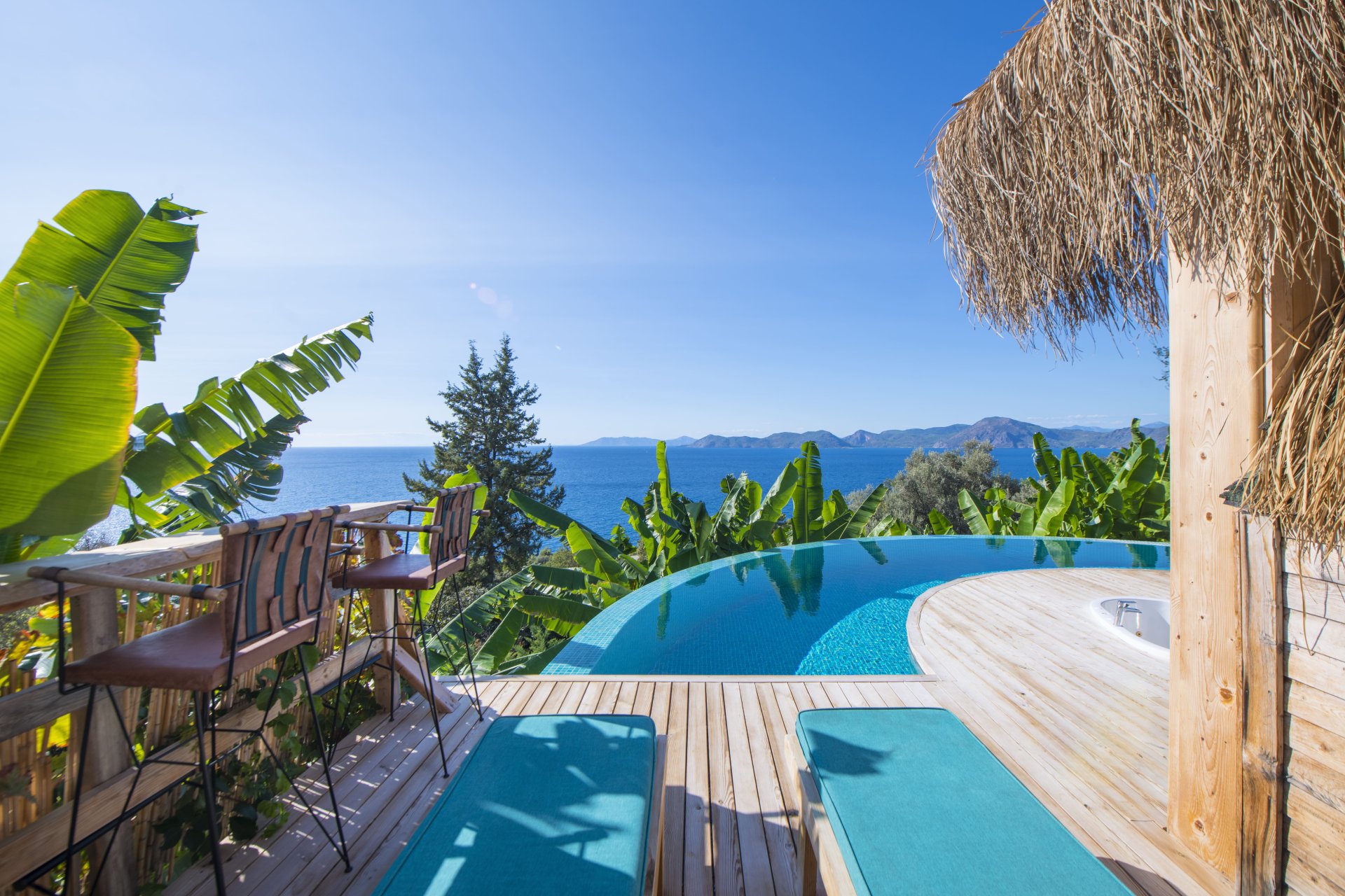 Özel havuzlu ve jakuzili, panoramik deniz manzaralıdır. İnfinity havuzu sayesinde deniz, havuz ve gökyüzü ahenk içinde birleşir