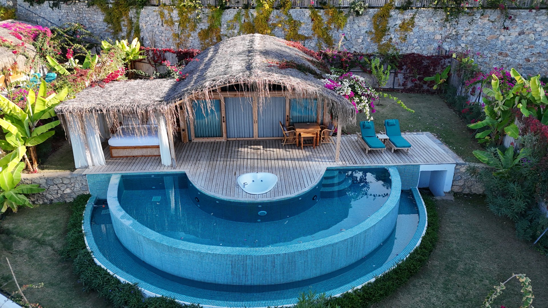 Sedir süitimiz özel havuzlu ve jakuzilidir. Havuz başında etrafı tüllerle çevrili dış yatak mevcuttur.